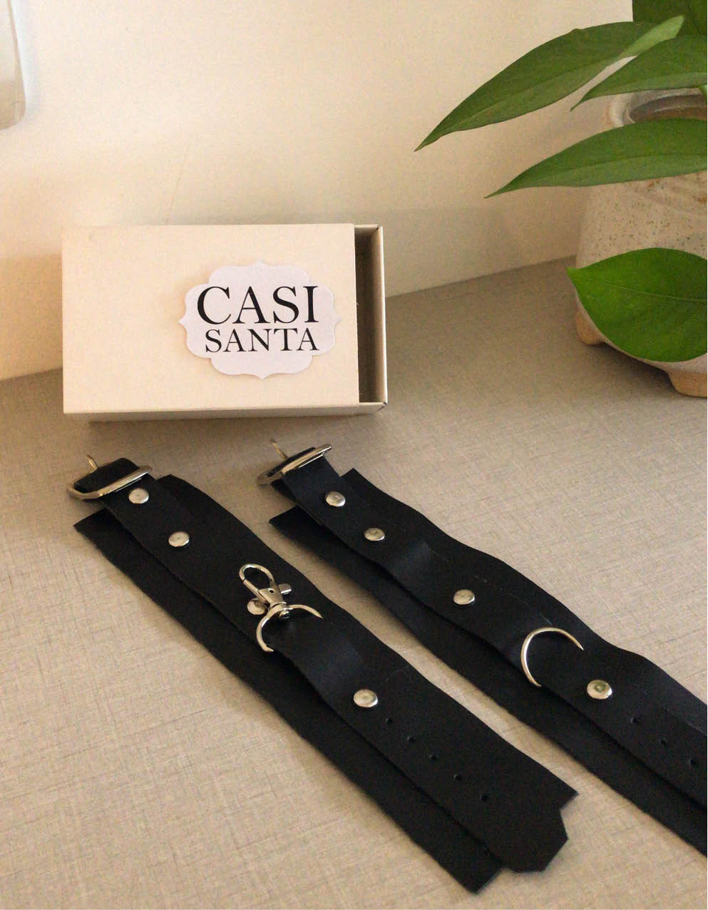 Esposas de ecocuero simple. Tiene hebillas para regular en muñecas.