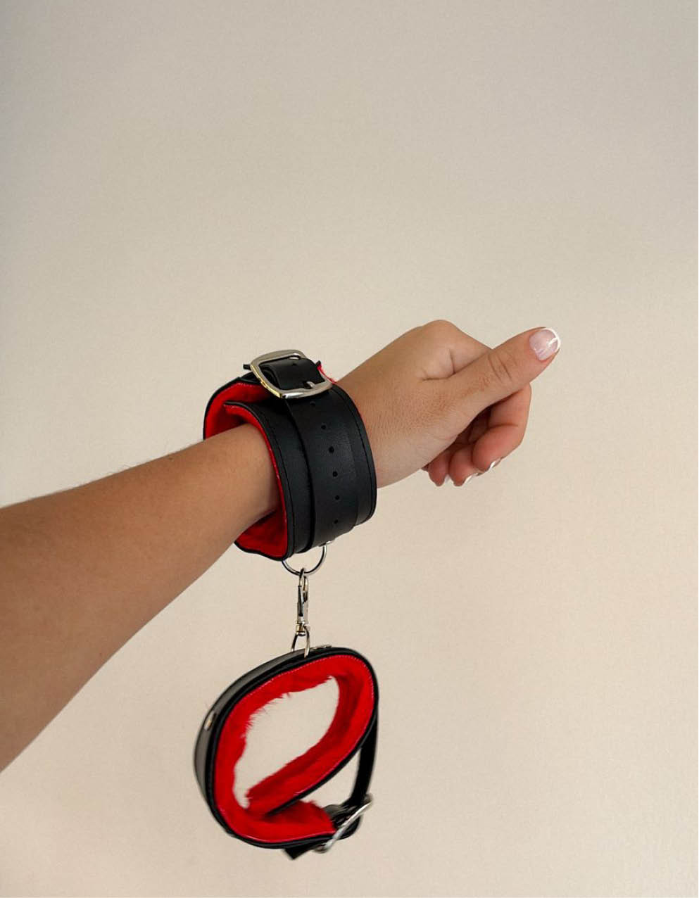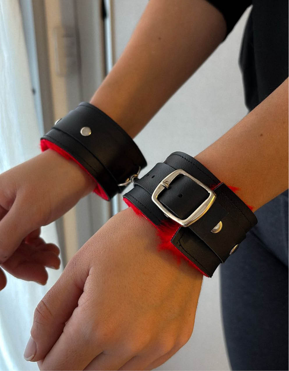 Esposas de ecocuero con peluche. Tiene hebillas para regular en muñecas.
