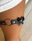 Liga de ecocuero con detalle en arandela en el centro y a los laterales moñitos, regulable en la parte de atrás.