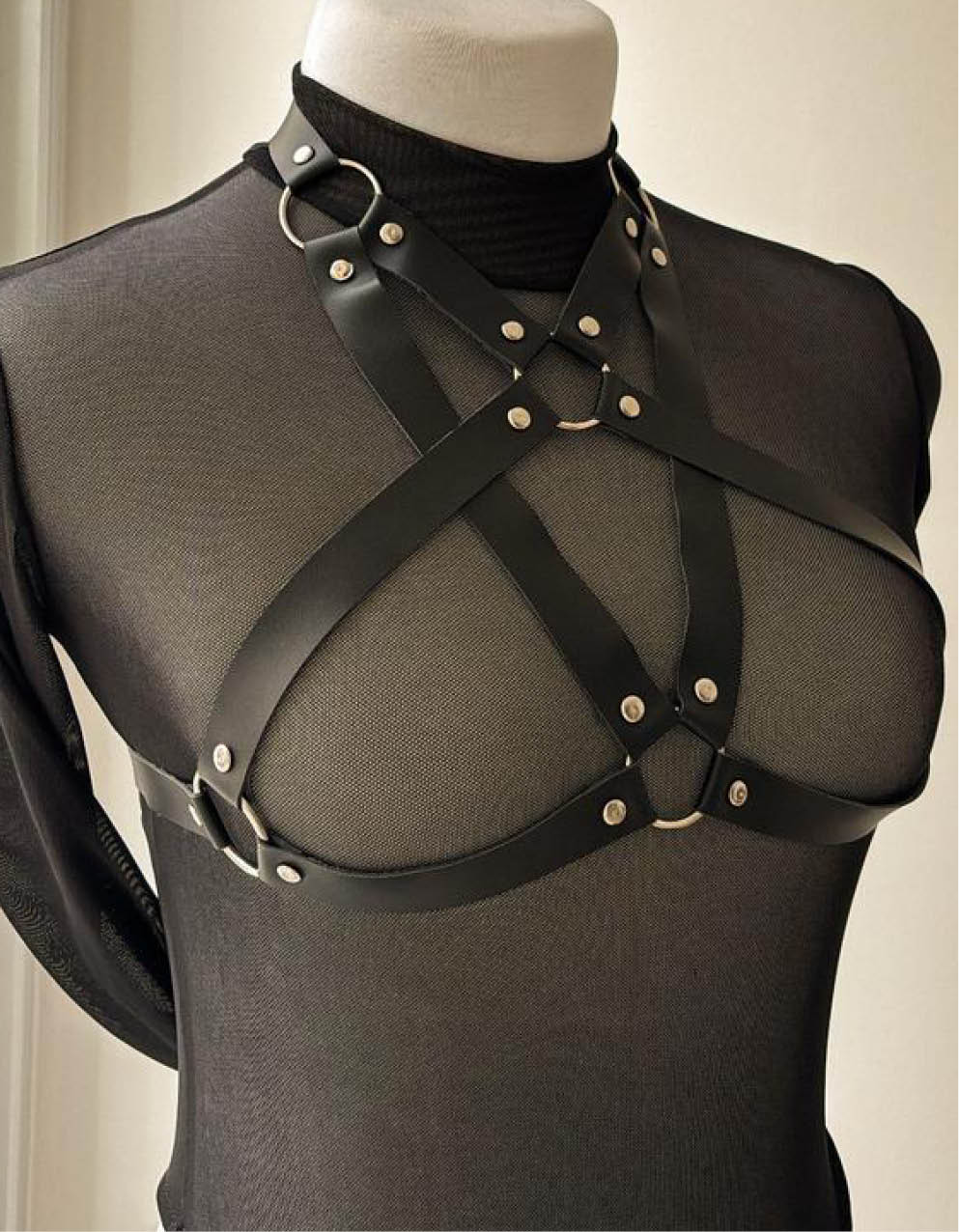 Modelo de arnes superior de ecocuero, regulable en cuello y en bajo busto!
